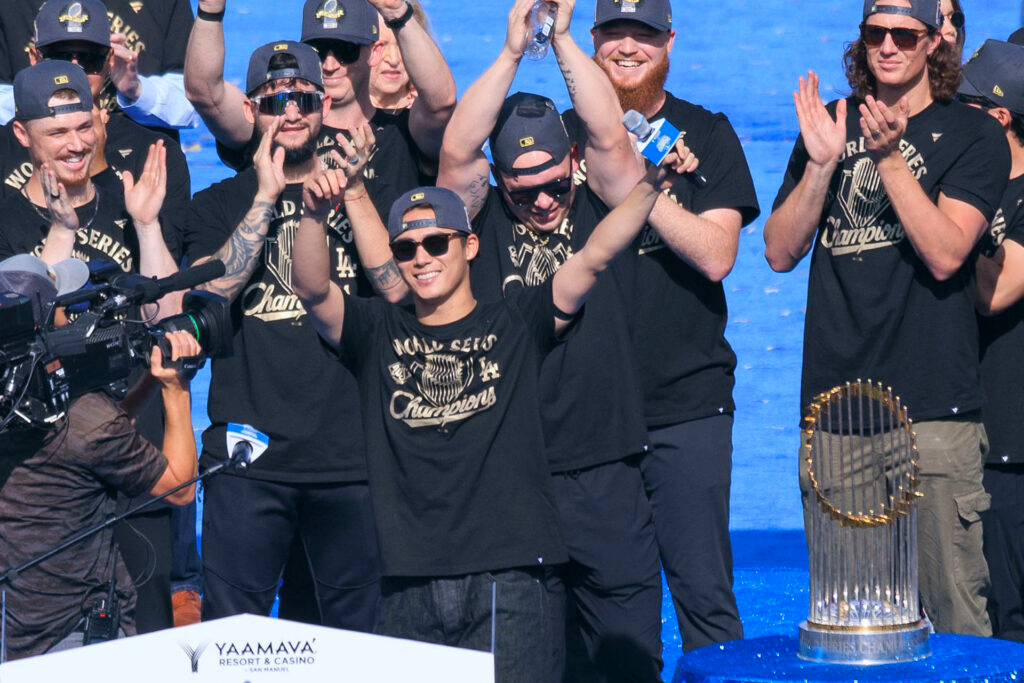 Los Dodgers celebraron su bicampeonato de la Serie Mundial con un desfile masivo que llenó de azul y blanco las calles de Los Ángeles